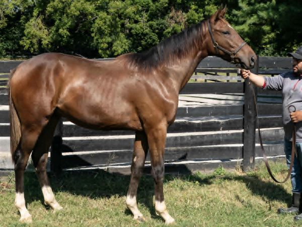 We are pleased to offer a 2024 Bay Colt for TRILOGY RACING III: This handsome, leggy colt has the right physical movement and temperament to make a quality race horse. His sire, Sharp Azteca, by Freud out of a Saint Liam dam made 17 starts while hitting the board 14 times and earning over 2.4 million. As a middle distance horse known for his speed, he won the Cigar Mile, The Hardacre Mile, The Pat Day Mile, the Monmouth Cup, and the Kelso, with reserves in the Breeders’ Cup Dirt Mile and the Malibu. He is known for passing speed on to his offspring, including his Grade 1 winning daughter, Sweet Azteca who has won 4 of her first 5 starts, including the Grade 1 Beholder Mile and the Grade 2 Great Lady M Stakes, where she set a New Track Record going 6.5f in 1:14.33. His dam, She’s So Cosmo, is a powerfully built Lemon Drop Kid mare who is out of stakes placed mare Manitoba Miss who traces back to the Storm Cat/Halo lines. She’s So Cosmo’s 3rd dam was none other than Dame Mysterieuse who won the Grade 2 Black Eyed Susan, was 2nd in the G1 Acorn, and 3rd in the Grade 2 Ashland. This 2024 dark bay colt, trimmed in four white socks, looks like he has the scope and leg to travel over a route of ground and at this point looks like he could run on any surface.